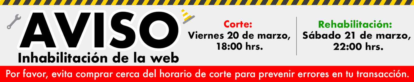 Toma en cuenta que la tienda funciona de lunes a viernes de 9 a 18:00 horas (Excepto feriados),