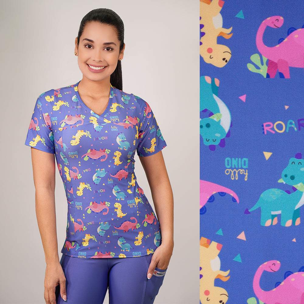 Delantal Mujer tela elasticada estampada Dinosaurios. Combina con Azul Marino - Art. 2507