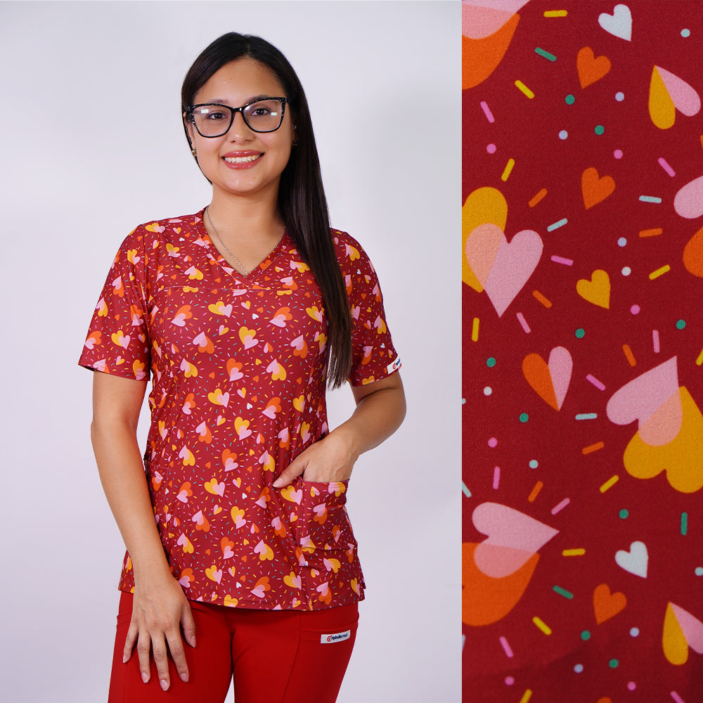 Delantal Mujer tela elasticada estampada Corazones. Combina con Rojo - Art. 2524