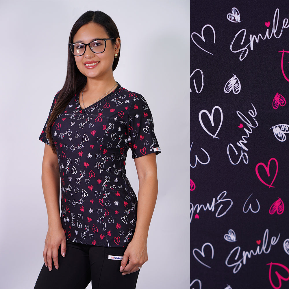 Delantal Mujer tela elasticada estampada corazones. Combina con negro - Art. 2528