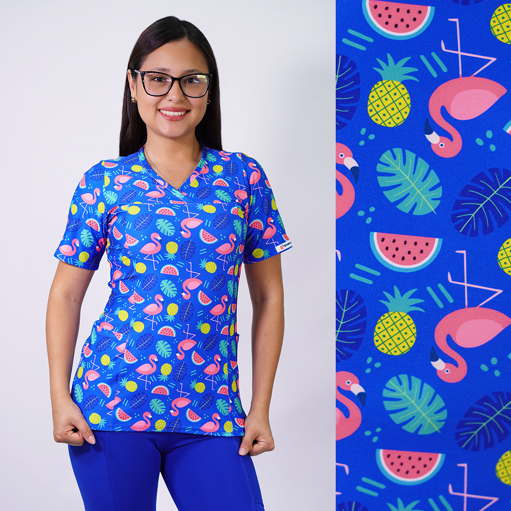 Delantal Mujer tela elasticada estampada. Combina con Azul Marino - Art. 2518
