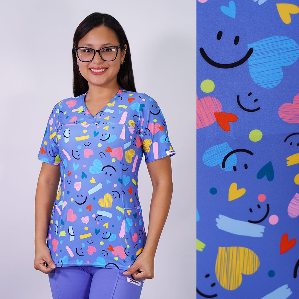 Delantal Mujer tela elasticada estampada Corazones. Combina con Celeste - Art. 2536