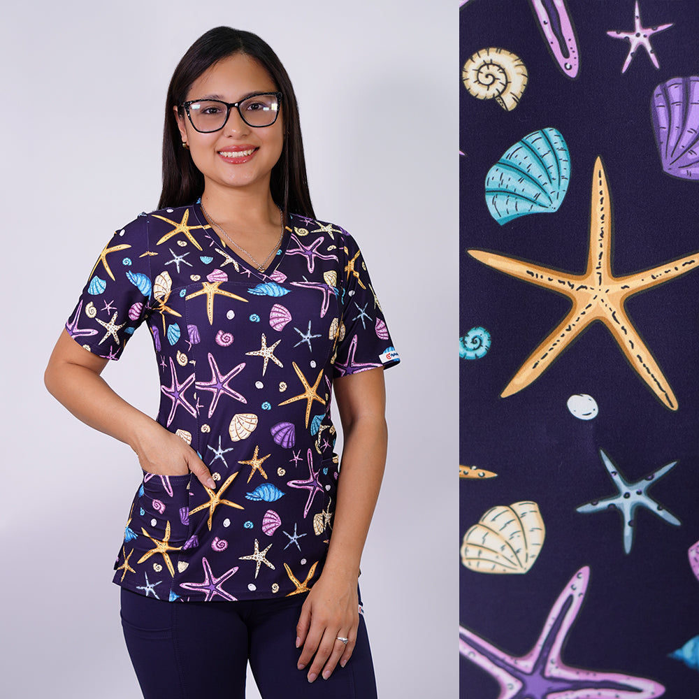 Delantal Mujer tela elasticada estampada Caballito de mar. Combina con Azul Marino - Art. 2512