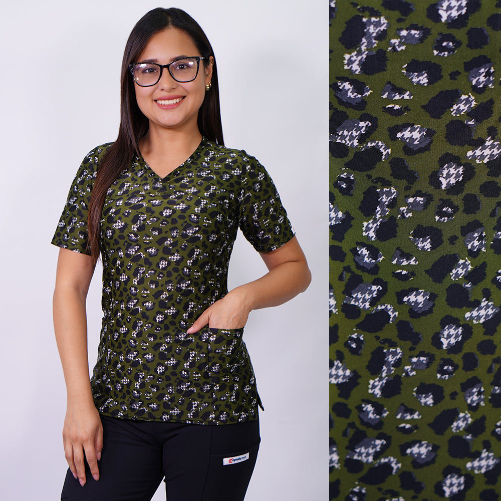 Delantal Mujer tela elasticada estampada Verde - negro - Art. 2543